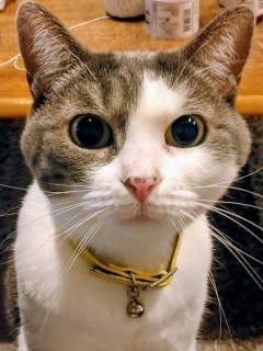 深夜になると変なテンションになりますね。これは飼い主のお仕事を邪魔しにきた猫ちゃん!「早く一緒に寝ようよ」のお誘いだー♪